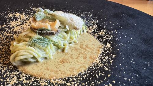 北イタリア、トレンティーノの春を感じさせる素敵な1皿が出来ました☘️特別コースでご用意致します????