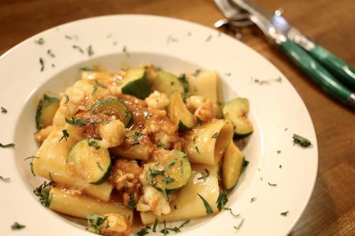 赤エビとピスタチオのパスタ パッケリ