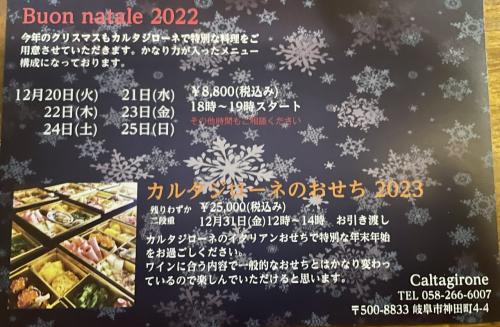 クリスマスディナーのご案内です。今年も華やかな料理ご用意させていただきます!ご予約お待ちしております✨