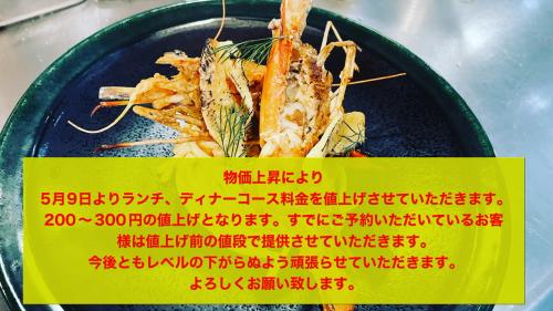 5月9日より平日のランチは予約制のコースのみとさせていただきます。土日祝日は通常ランチもご利用いただけます。